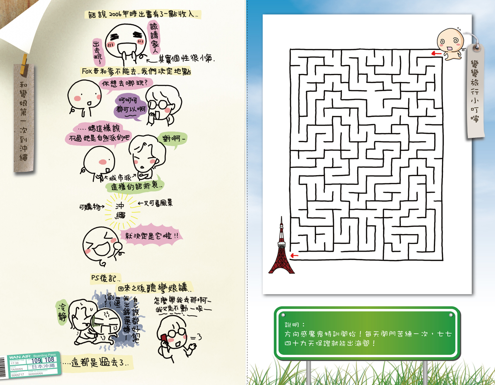 個性迷糊的 彎彎 ,將這十五個月來出遊的趣事、迷糊糗事,全畫進了新書《可不可以天天出去玩》裡。