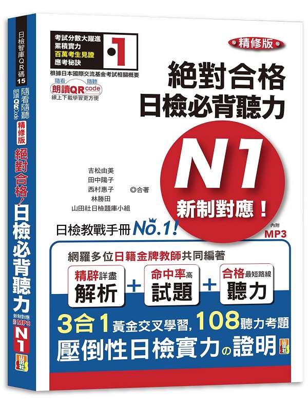 | 作者:吉松由美、田中陽子、西村惠子、林勝田、山田社日檢題庫小組 合著 出版社:山田社,出版日期:2022/10/6 定價:410 元,優惠價:79 折 324 元 |  |