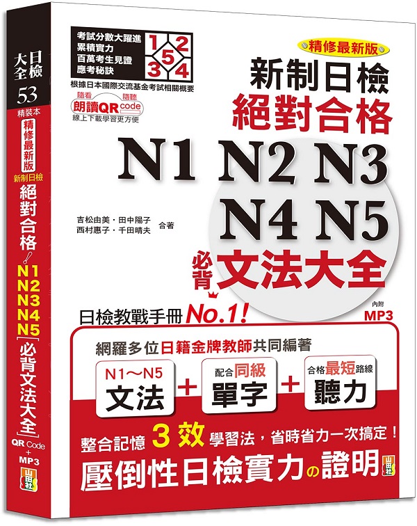 精裝本 精修最新版 新制日檢!絕對合格 N1,N2,N3,N4,N5必背文法大全(25K+MP3+QR Code)