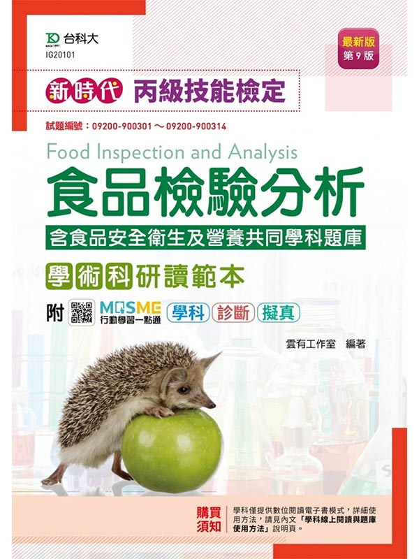 新時代 丙級食品檢驗分析學術科研讀範本含食品安全衛生及營養共同學科題庫(最新版)(第九版)(附MOSME行動學習一點通:學科.診斷.擬真)